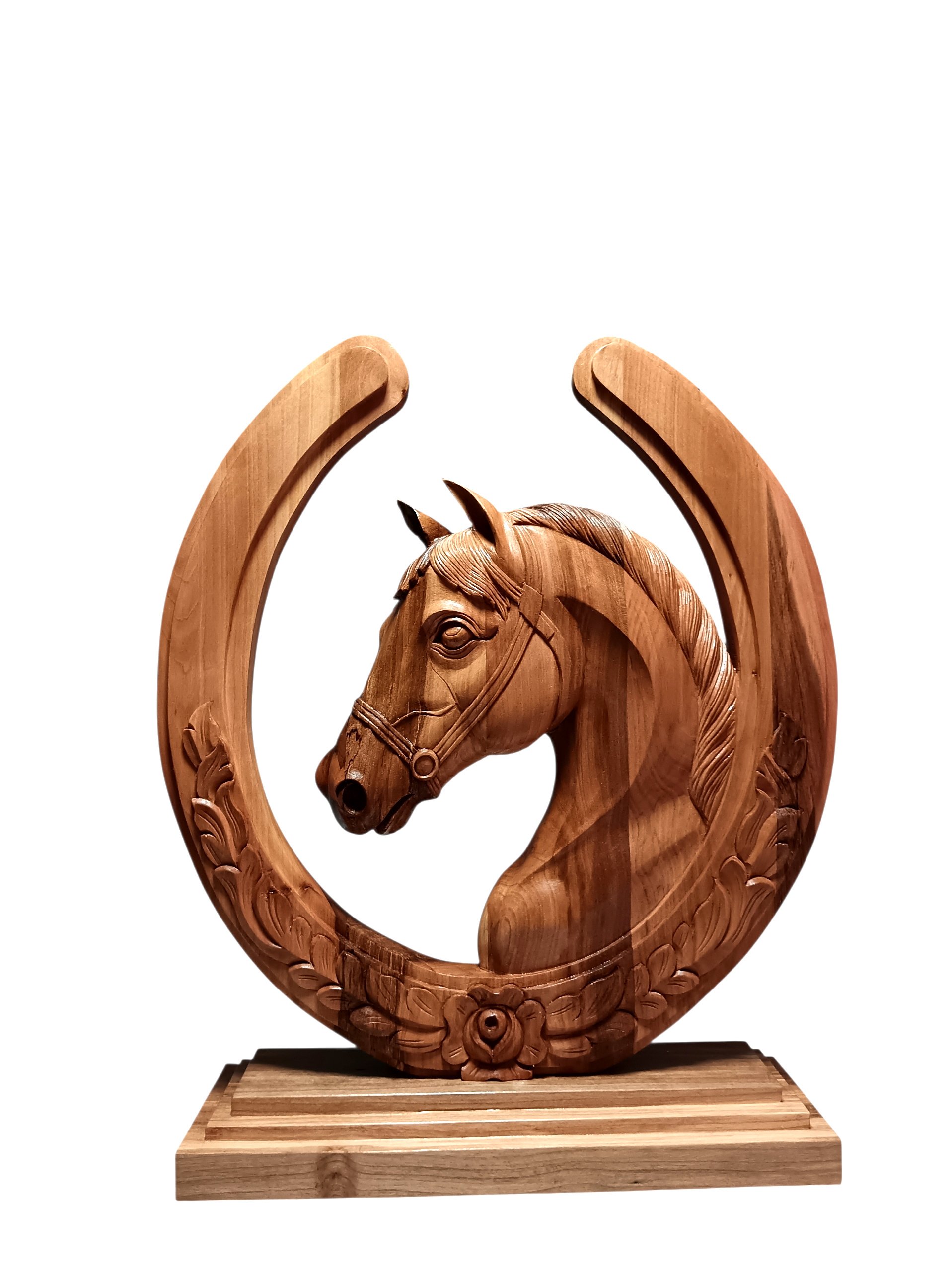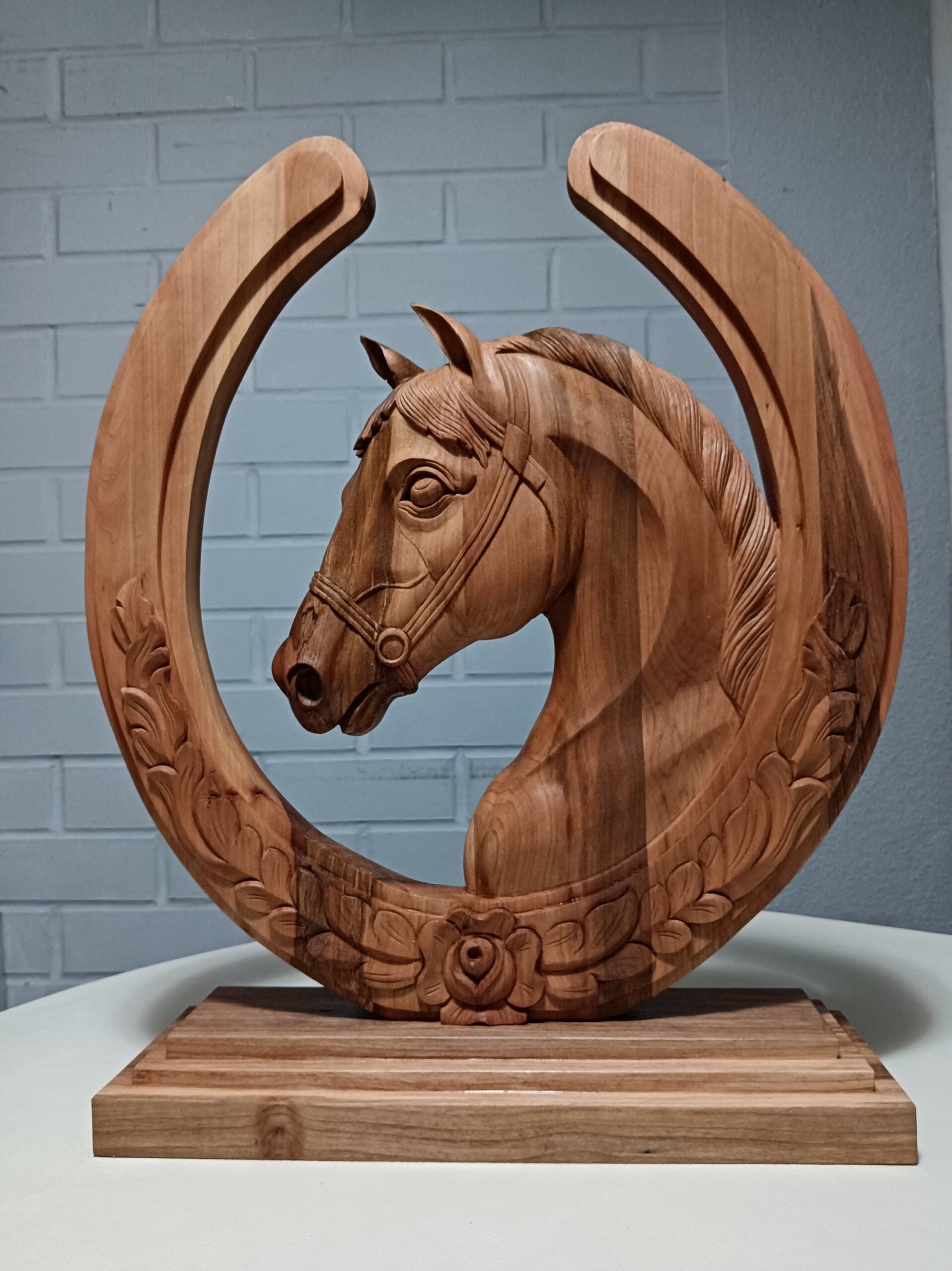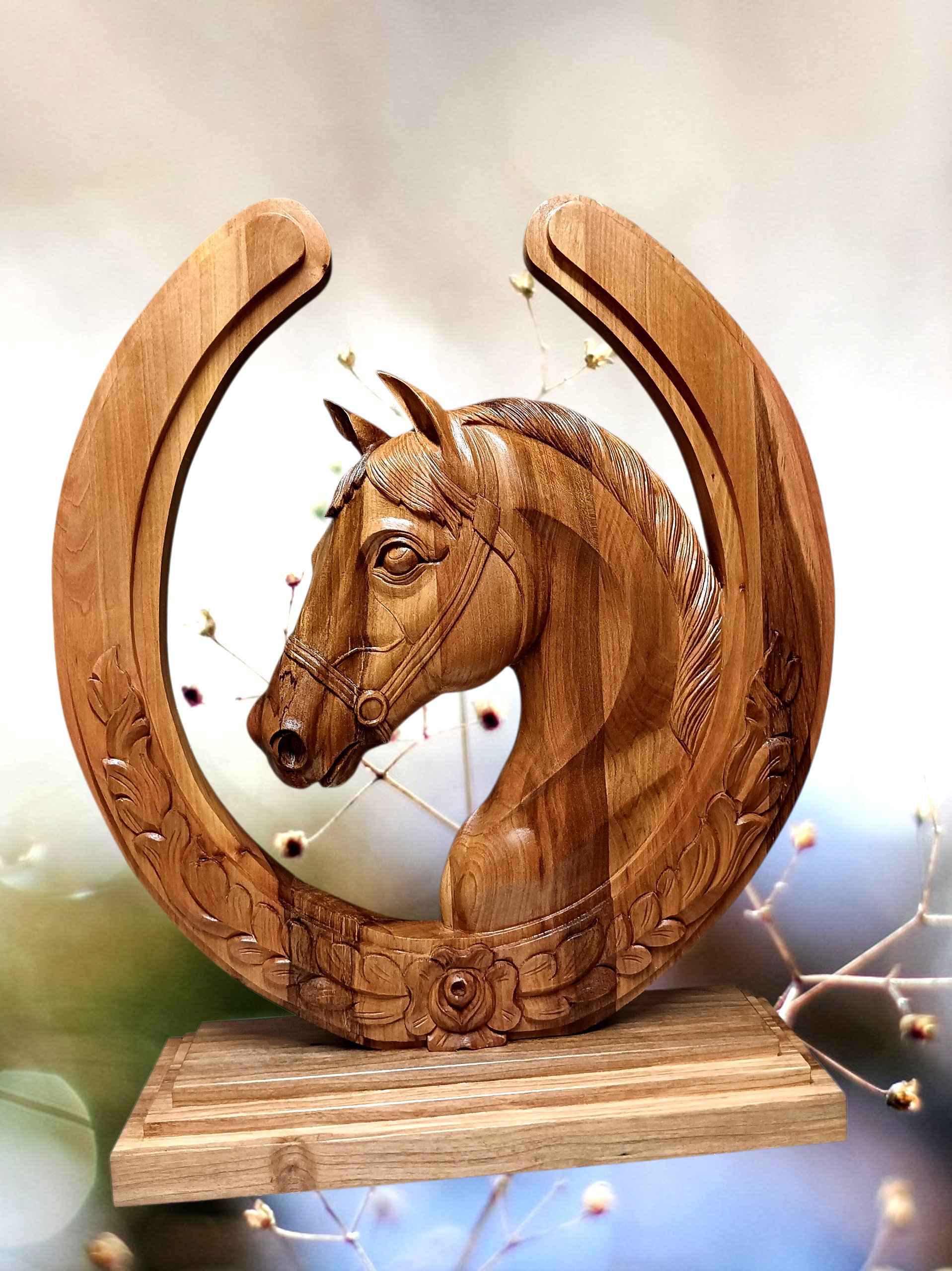 Caballo decorativo tallado en Roble medidas 50×50 aprox.